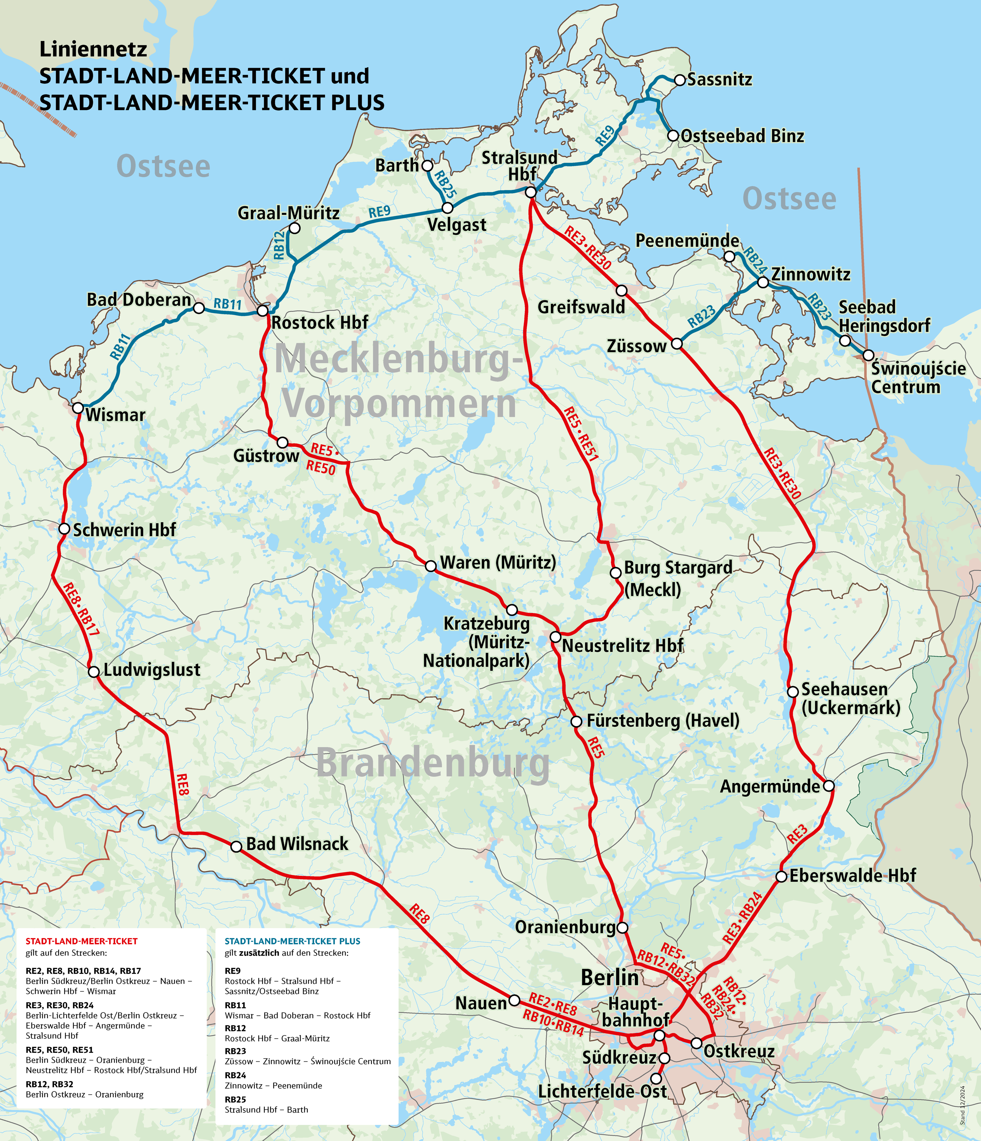 Gilt nicht für IC- und ICE-Züge. Das Stadt-Land-Meer-Ticket sowie das Stadt-Land-Meer-Ticket PLUS gelten nicht für Binnenverbindungen innerhalb von Mecklenburg-Vorpommern oder Berlin/Brandenburg. Die Tickets gelten also nicht für Fahrten innerhalb eines Bundeslandes.