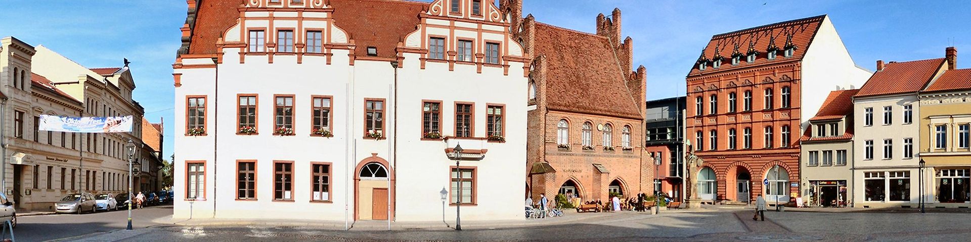 Gleich hinter dem Rathaus erheben sich majestätisch die Türme der Marienkirche. Bemerkenswert sind ihr Flügelaltar, die reich geschmückte Kanzel und die hanseatische astronomische Uhr unterhalb der Orgelempore. An die Pfarrkirche schließt sich die Breite Straße an. Hier präsentieren sich restaurierte Häuser mit schmuckreichen Fassaden aus der Gründerzeit und Elementen des Jugendstils.